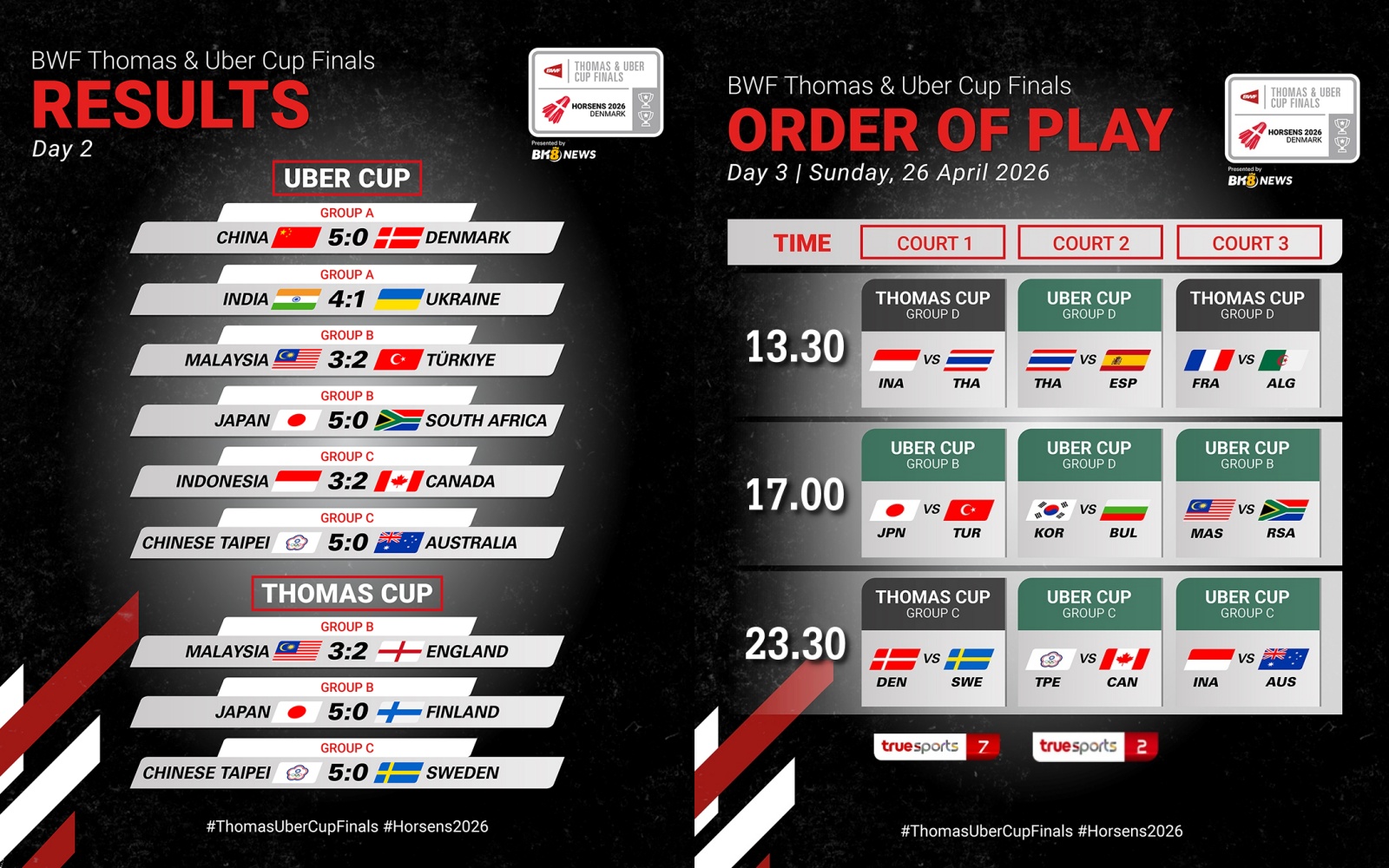 Live | GroupStage | DAY-3 | ThomasUberCup 2026